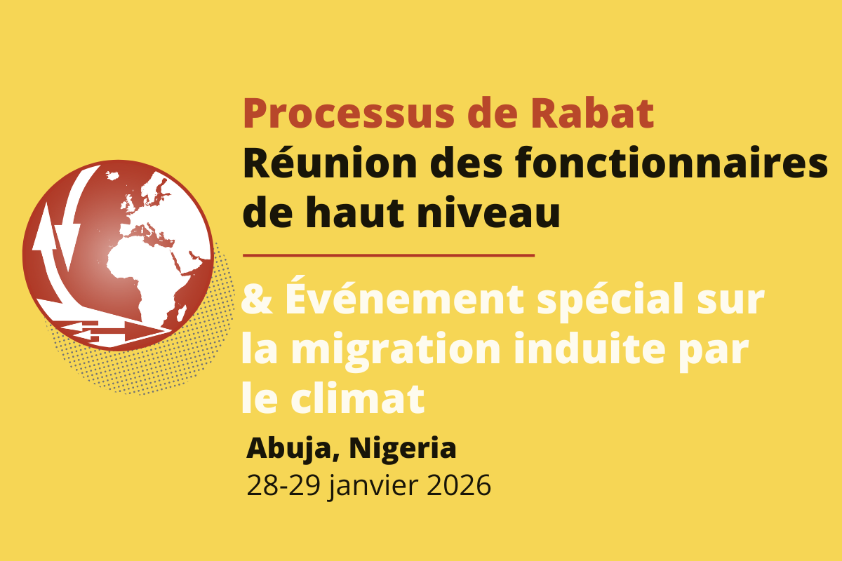 Les 28 et 29 janvier 2026, le Nigéria accueillera un événement spécial sur la migration induite par le climat, suivi de la réunion des fonctionnaires de haut niveau du Processus de Rabat. Ces événements, qui se tiendront à Abuja, au Nigeria, marqueront la fin de la fin de la présidence nigériane du Dialogue, ainsi que le transfert officiel de la présidence du Processus de Rabat à la Suisse. Ils seront précédés d'une réunion du Comité de pilotage le 27 janvier 2026, exclusivement réservée à ses 16 membres.