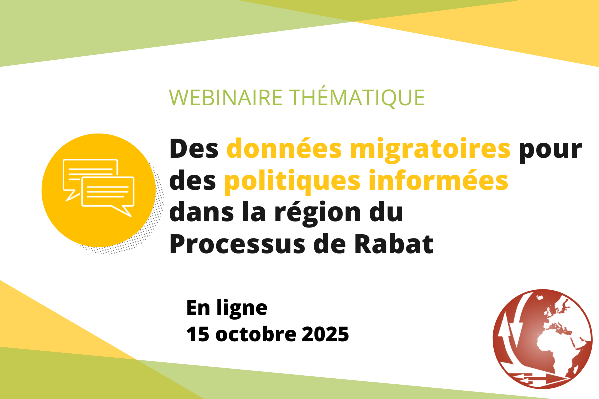 Le mercredi 15 octobre 2025, le Processus de Rabat tiendra un webinaire thématique sur le renforcement des politiques migratoires fondées sur les preuves dans la région du Dialogue.